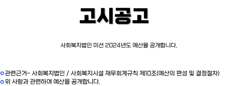 [고시공고] 사회복지법인 미선 2024년도 예산공개