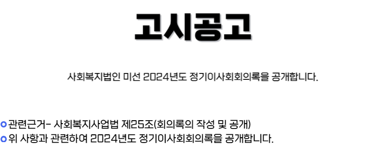 [고시공고] 사회복지법인 미선 2024년도 정기이사회회의록 공개