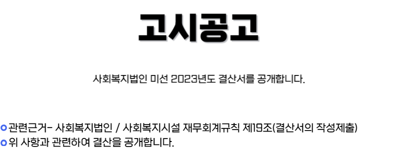 [고시공고] 사회복지법인 미선 2023년도 결산서 공개