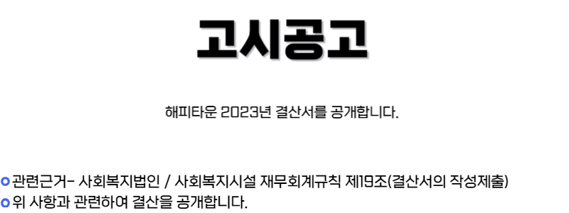 | [고시공고] 사회복지법인 미선 2023년도 결산서 공개 (0) | 2024.02.26 |