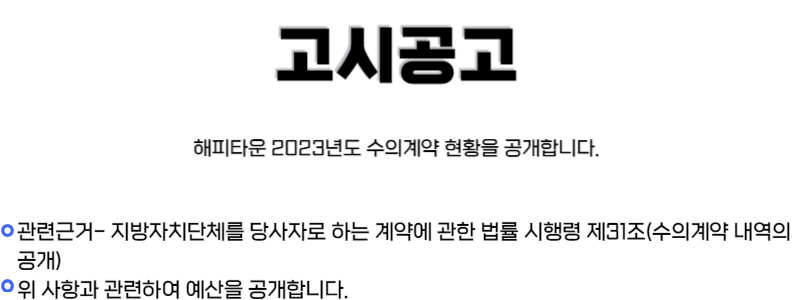 [고시공고] 해피타운 2023년도 수의계약 현황 공개