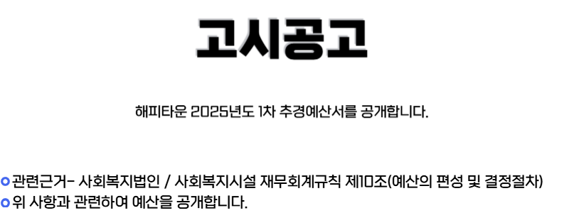 [고시공고] 해피타운 2025년도 1차 추경예산서 공개